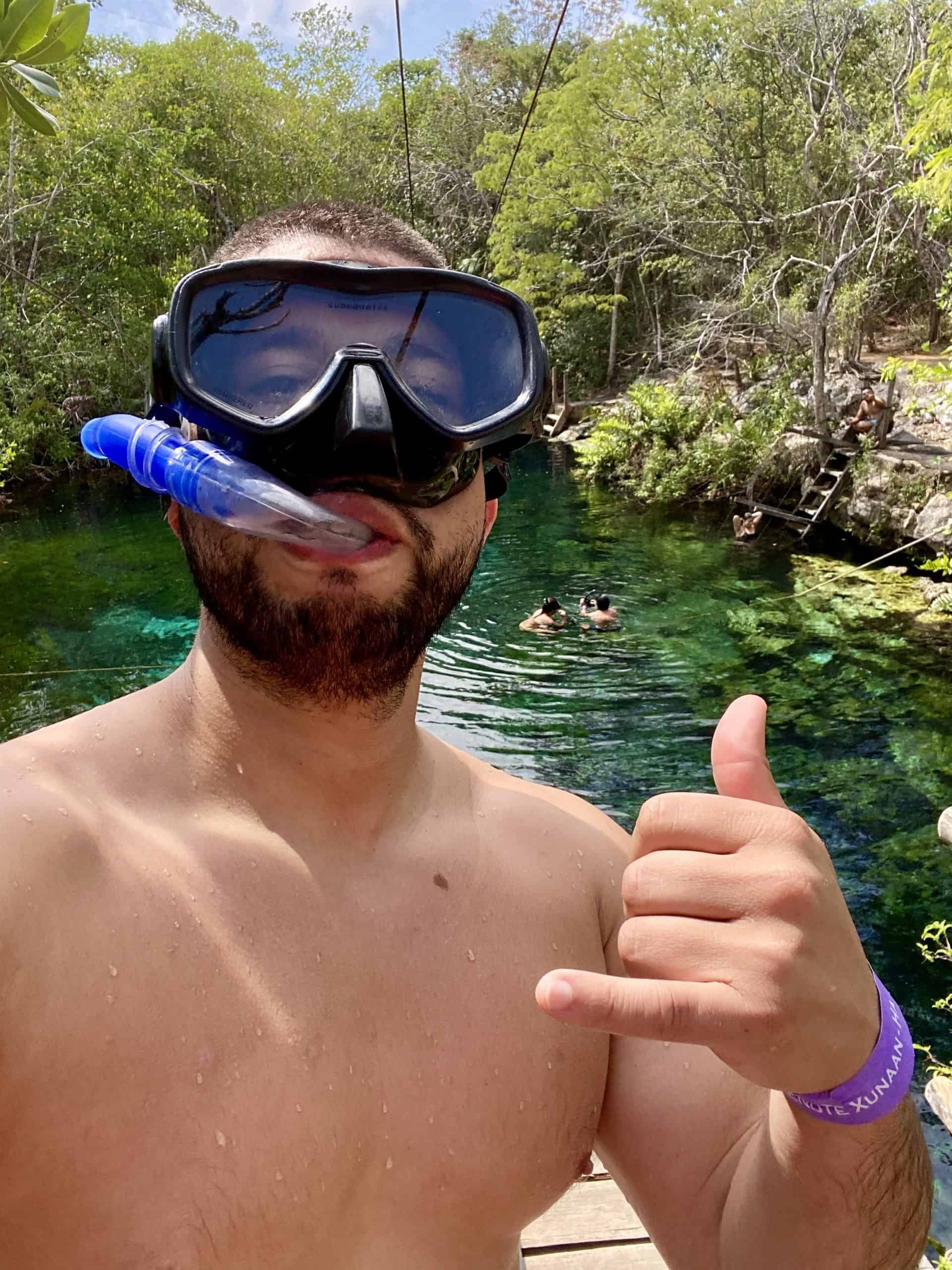 Snorkeling a cenote in Tulum, Quintana Roo, Mexico